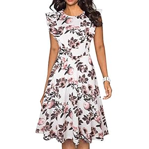 IHOT Women’s Vintage Ruffle Floral Flared A Line Swing Casual Cocktail Party Dresses with Pockets