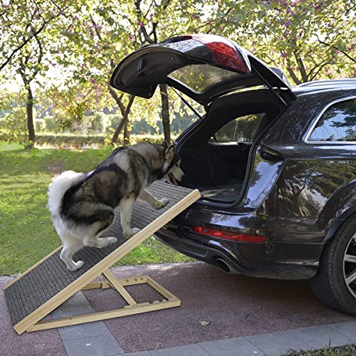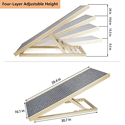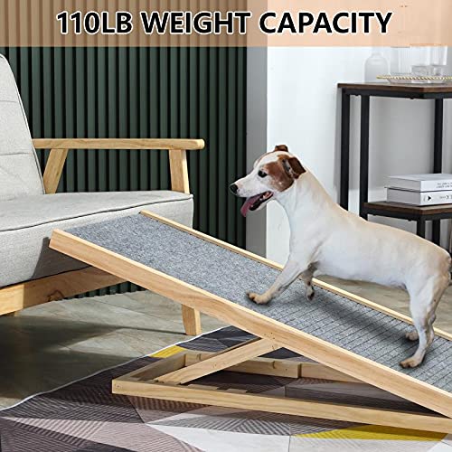 Wooden Adjustable Pet Ramp, Butizone Folding Portable Dog Ramp for Couch, Bed and Car, Height Adjustable Ramp with Paw…