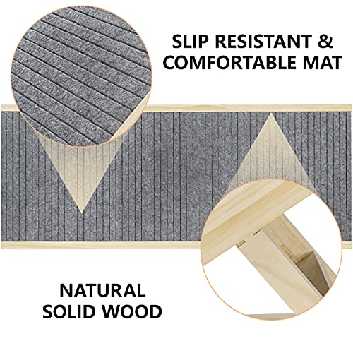 【 SAFETY & STURDY 】The dog ramp is constructed of nature solid wood, features smooth and burr-free. And the ramps are independently safety tested and it is strong enough to support pets up to 110 Lbs.