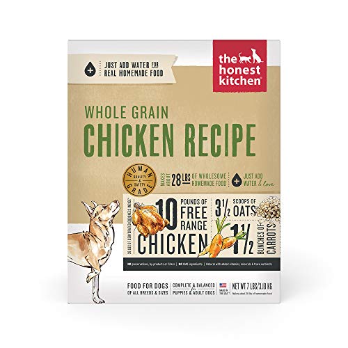 FREE RANGE CHICKEN & ORGANIC WHOLE GRAINS: The Honest Kitchen Whole Grain Chicken dog food is made with real whole food ingredients like free range chicken, organic oats, carrots & bananas, which are gently dehydrated for maximum flavor & nutrient retention and easy digestion.