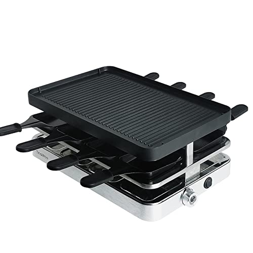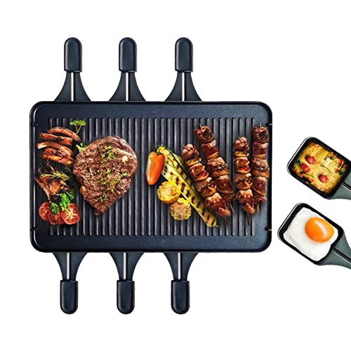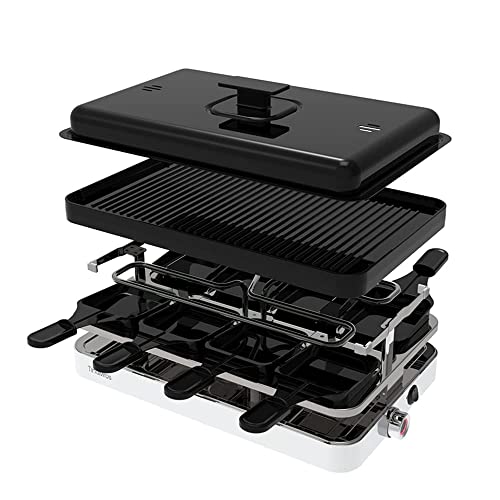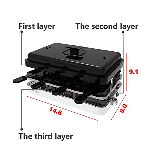 TinaMros 3 Layers with Lid 1500W Portable Non-Stick Reversible 2 in1 Electric Raclette Grill Table for 8 Paddles and…