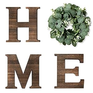 NOVEL AND BEAUTIFUL DESIGN: The great quality wood letters for wall decor “H”, “M”, “E” comes with eucalyptus wreath for “O”. The new design adds more pretty and attraction for the home decor letters. Could change wreath every season as you like.